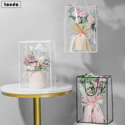 توندو تصميم جديد باقة أكياس التعبئة والتغليف البلاستيكية حقيبة يد بلاستيكية واضحة حقائب للهدايا مع مقبض